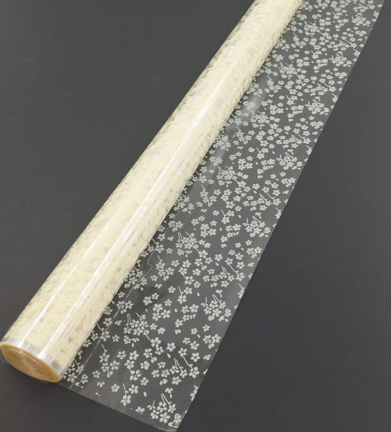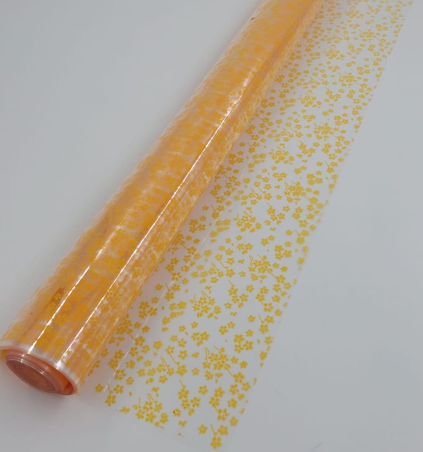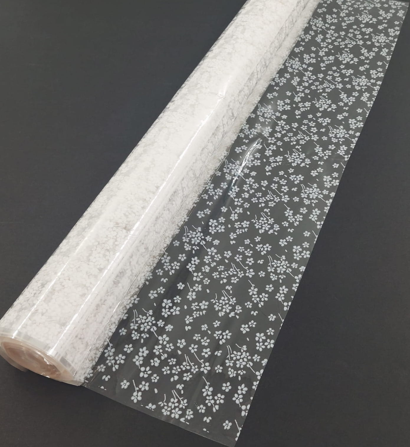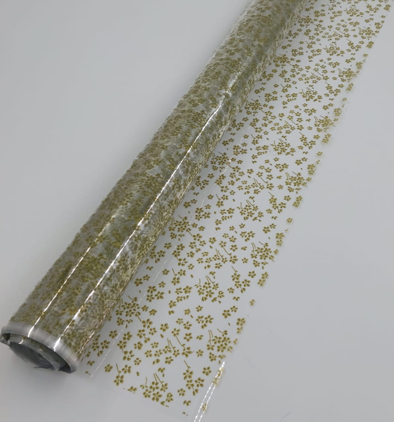 Arkusze foliowe o wymiarach 50X70 z nadrukiem cm potocznie zwane celofanem o bardzo wysokiej przeźroczystości. Idealne do pakowania kwiatów, koszy prezentowych itp.