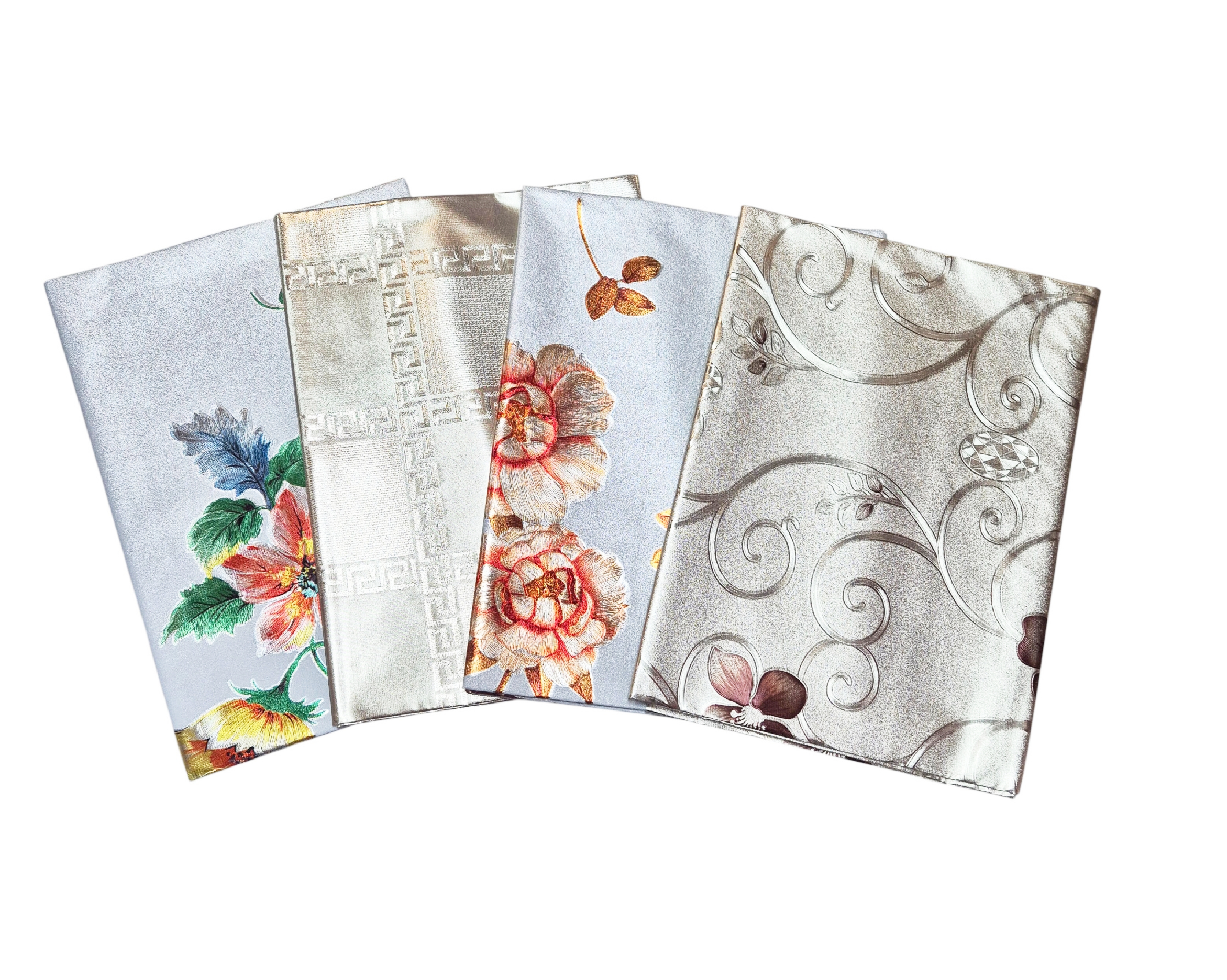 Gruba cerata PVC na płótnie, gramatura ok. 295g/m2, z efektem 3D metalic o zróżnicowanych wzorach i w szerokiej kolorystyce o wymiarze 100x137 cm, wodo i plamoodporna.