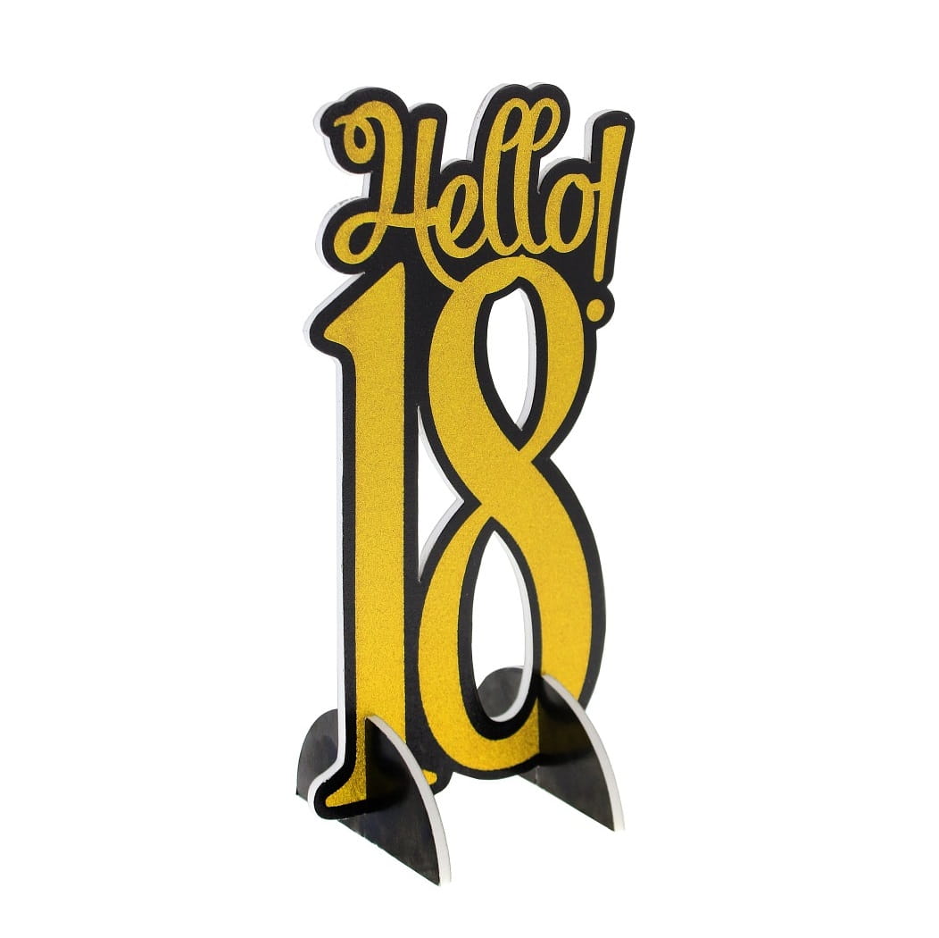 Papierowa dekoracja na 18-te urodziny utrzymana w czarno-złotej kolorystyce i oprószona brokatem. Wysokoś ozdoby: 30 cm, szerokość: 19 cm.