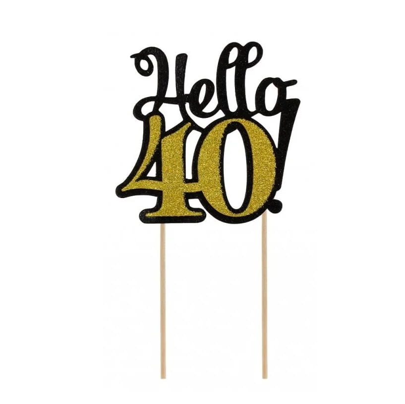 Papierowa dekoracja - topper na tort urodzinowy. Wysokość: 19 cm, szerokość: 10 cm.