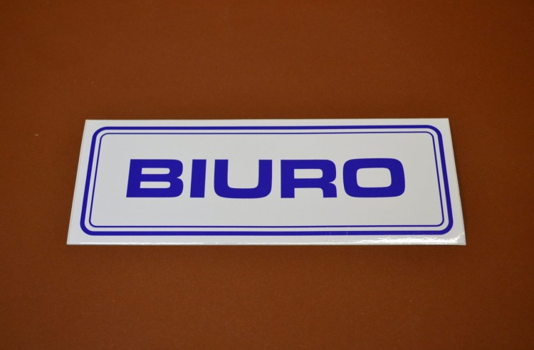 BIURO. Naklejka informacyjna o wymiarze 8 x 21 cm.
