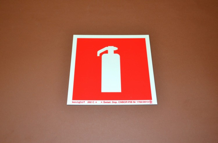 GAŚNICA. Naklejka informacyjna, świecąca w ciemności, o wymiarze 15 x 15 cm.