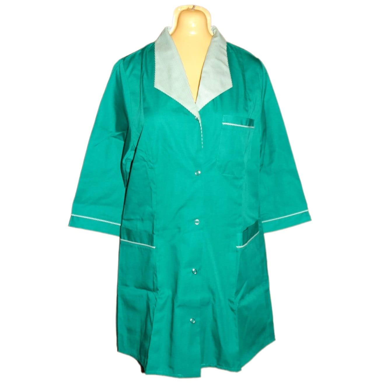 Fartuch damski z rękawami 3/4 i dekoracyjnymi wstawkami przy kołnierzu, rękawach i kieszeniach. Materiał: elanobawełna. Gramatura: 175 g/m2.