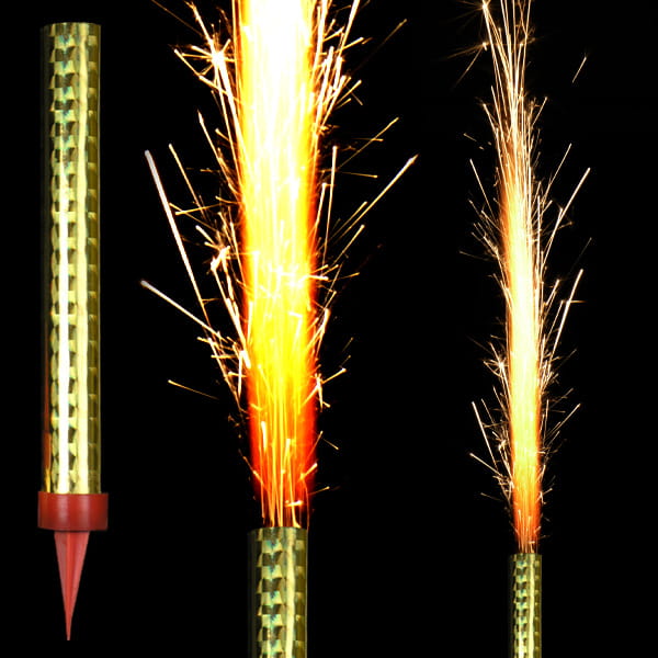 Fontanna o długości 12 cm holograficzna. Czas palenia ok. 40 sekund, pakowana po 4 szt. na eurozawieszce.