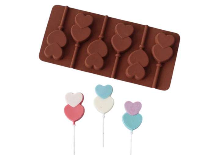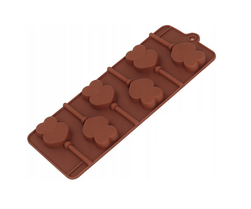 Foremka silikonowa do lizaków wys. 6 cm 8-gniazd serca z patyczki 13x22 cm