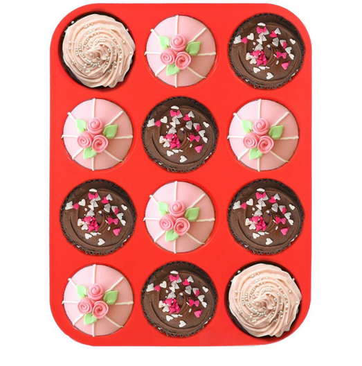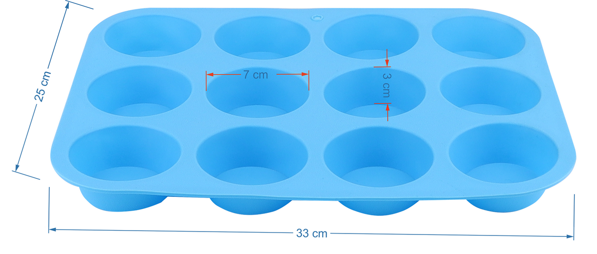 Foremka silikonowa wymiarze 25x35x3 cm do muffinek, babeczek 12 otworów o średnicy 7 cm.