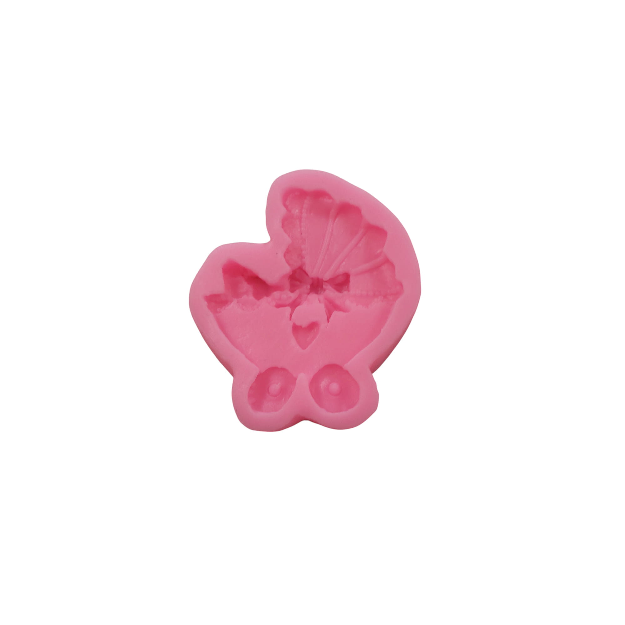 Forma silikonowa o wymiarach 6x6,5 cm do masy cukrowej, czekolady, gipsu, mydła i innych mas plastycznych. Temperatura stosowania od-40 do +200 st. Celsjusza. Wymiar odlewanego wózka to około 45x55 mm.