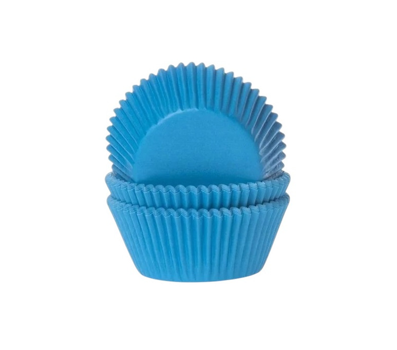 Foremki papierowe do wypieku i serwowania babeczek o średnicy 50 mm i wysokości 25 mm, pakowane po 150 szt. Kolor błękitny.