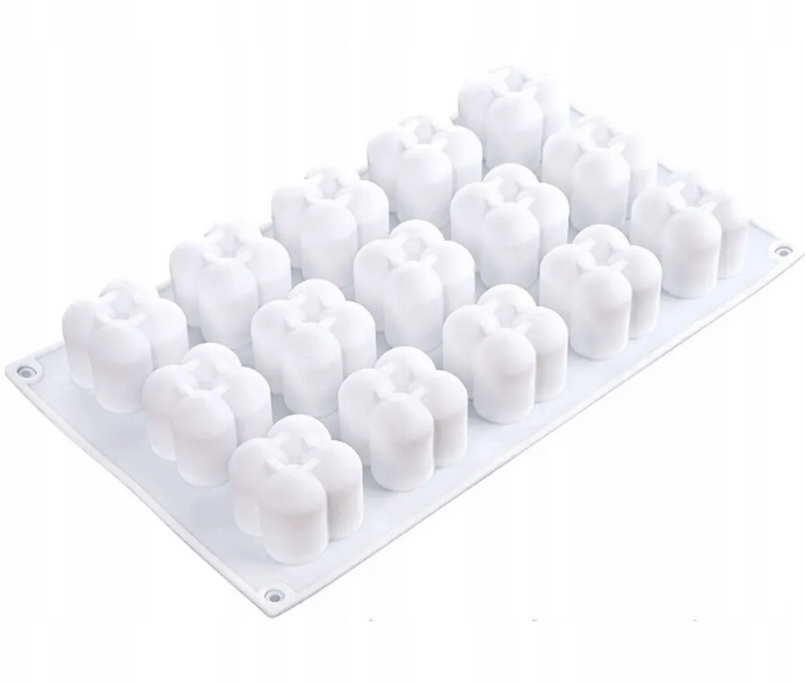 Foremka silikonowa 15 gniazdowa o wymiarze 17x28,5 cm, wymiar pojedyńczego gniazda około 4x4x4 cm.