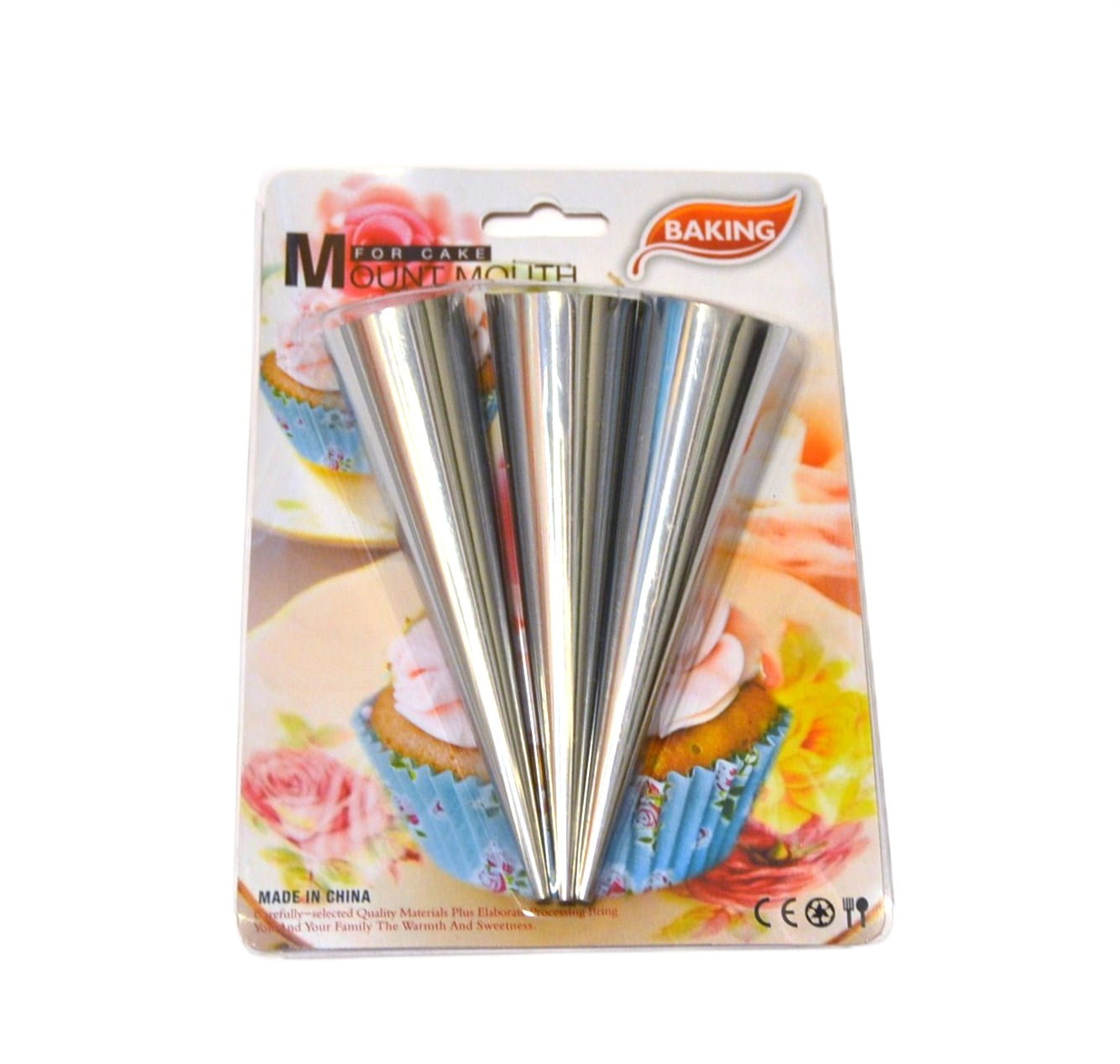 Foremki do wypieku rurek cannoli o długości 14 cm. W zestawie 3 sztuki.
