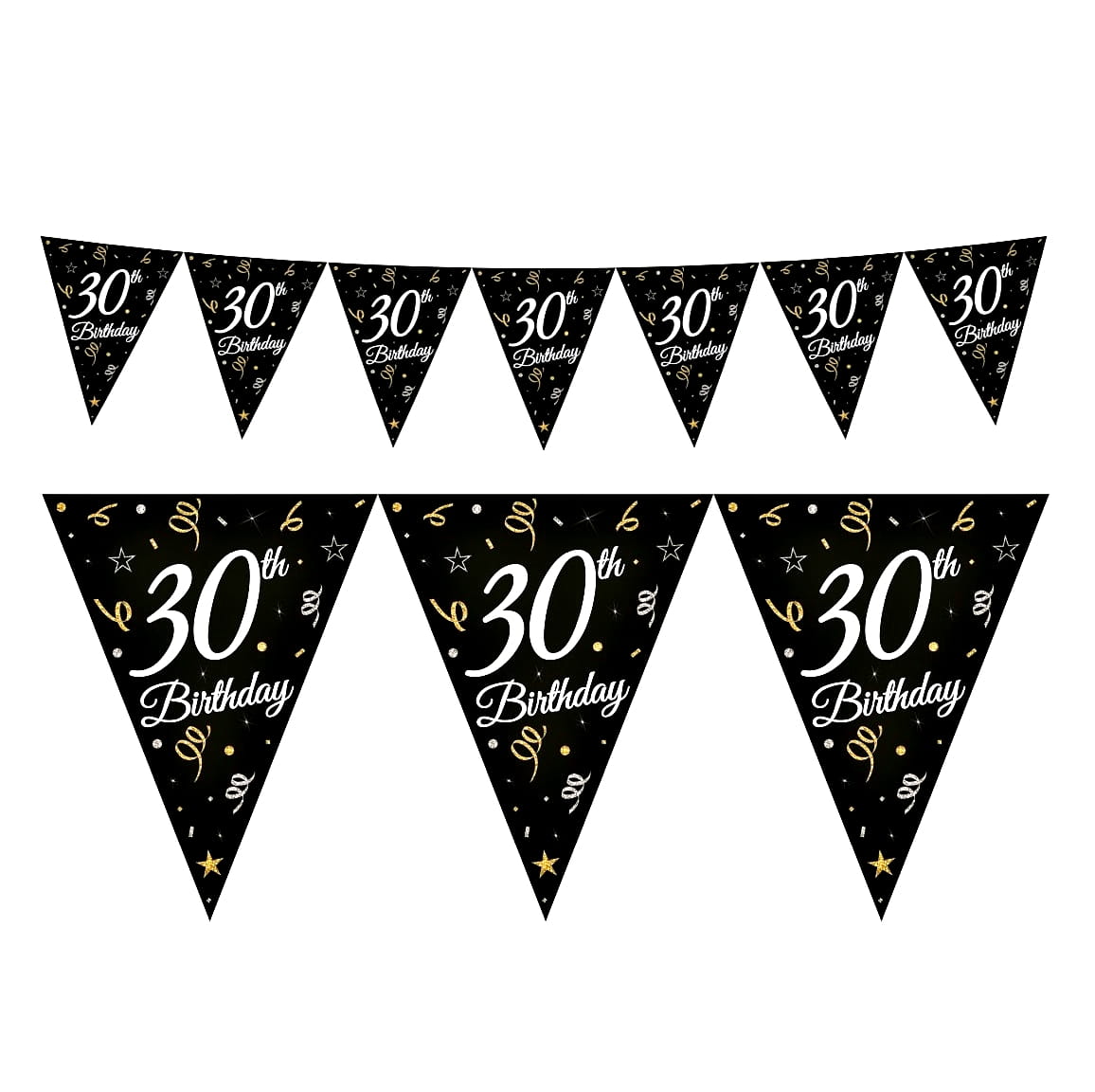 Girlanda w formie proporców dedykowana pod imprezę urodzinową. Długość girlandy: 270 cm, wysokość 28 cm.