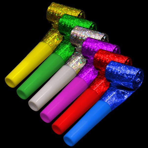 Zestaw 10 gwizdków, trąbek holograficznych, pakowane w miksie kolorów, niezastąpiony na imprezach urodzinowych, party.