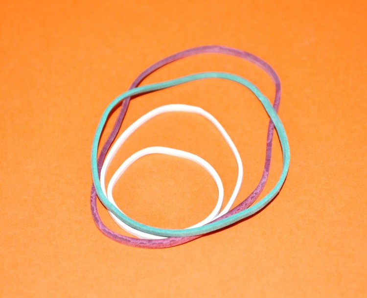 Gumka recepturka o średnicy 4 cm i przekroju gumy 1,5 mm x 1,5 mm, zawartość kauczuku 60 %, rozciągliwość do 14 cm, około 3200 szt w opakowaniu. Kolor zielony.