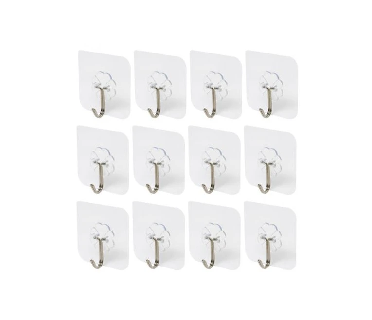 Zestaw 12 wieszaków samoprzylepnych – Przezroczyste PVC