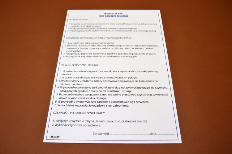 INSTR. BHP - DRUKARKA - TABL. PCV NADRUK 25x35 cm