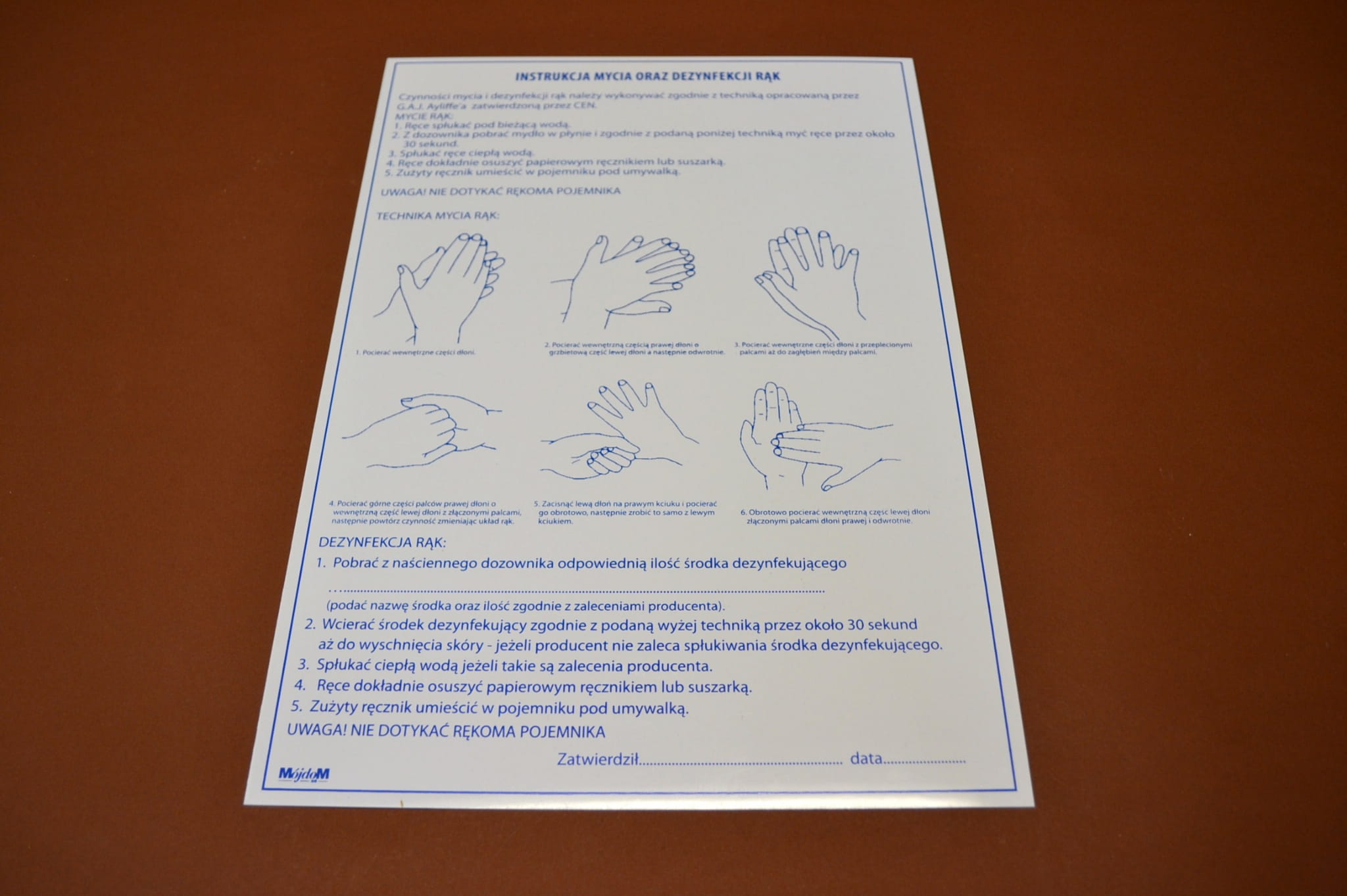 INSTR. BHP - MYCIE RĄK - TABL. PCV NADRUK 25x35 cm