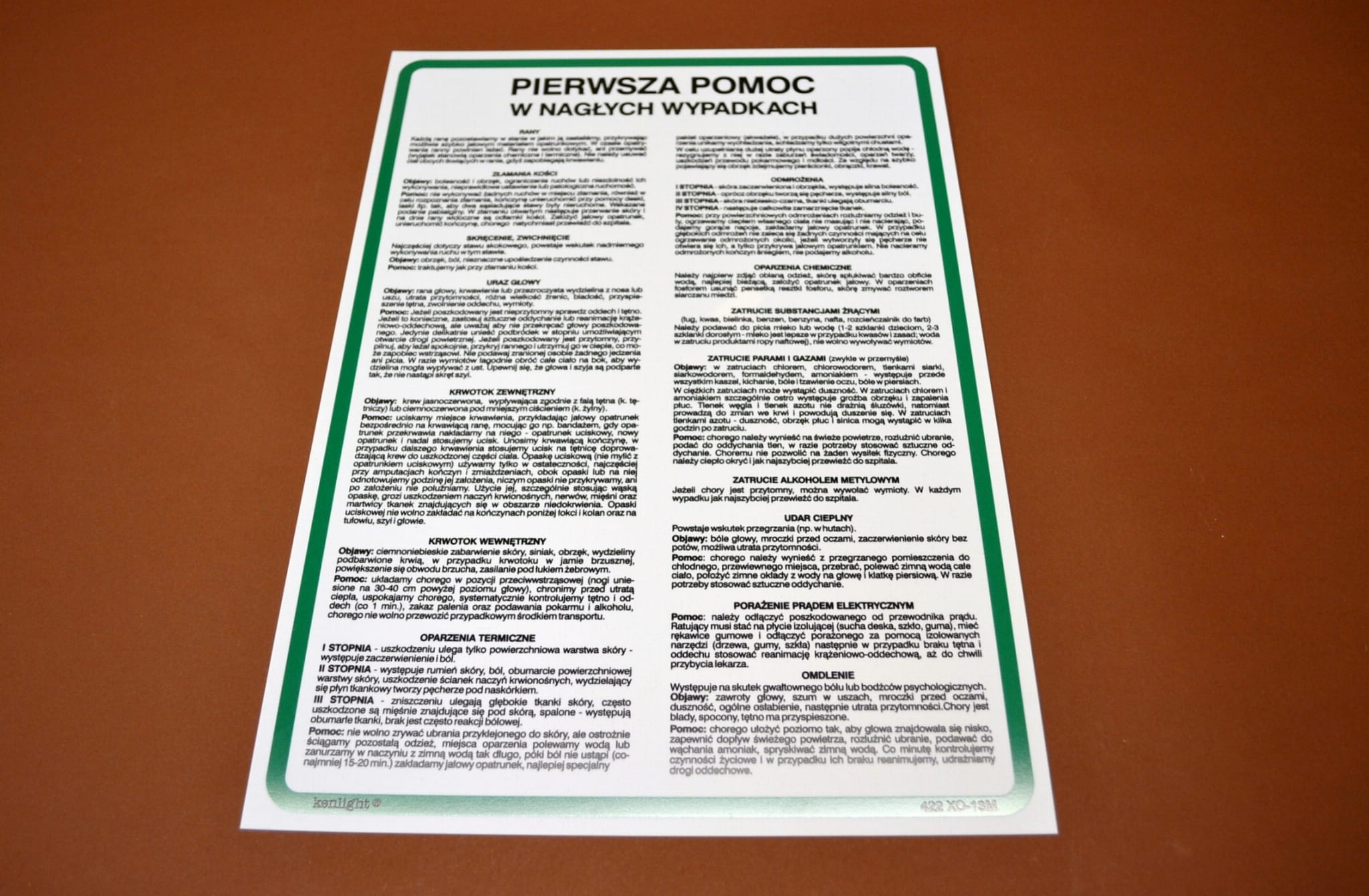 INSTR. BHP - P. POMOC - TABL. PCV NADRUK 25x35 cm