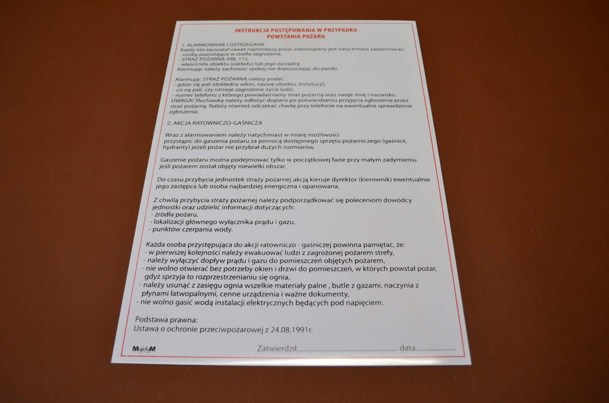 INSTRUKCJA POSTĘPOWANIA W PRZYPADKU POWSTANIA POŻARU.