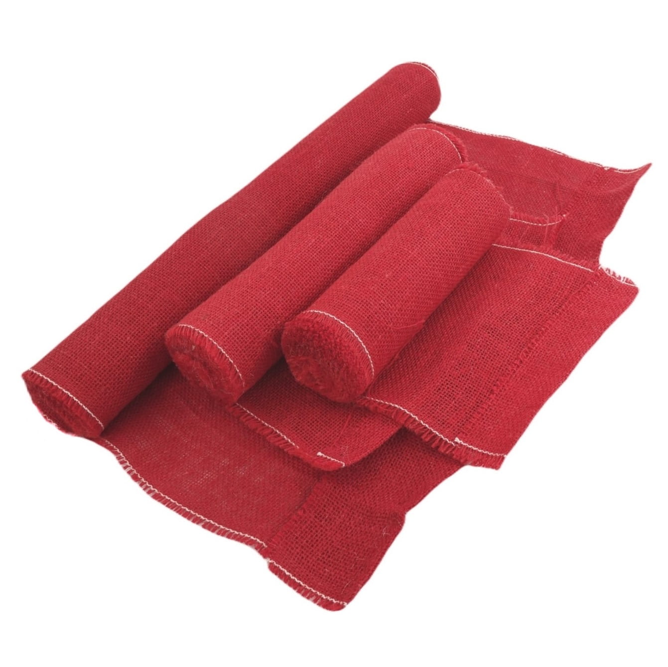 Juta naturalna tkana barwiona na kolor czerwony o szerokości 20 cm i długości nawoju 5 m, gramatura 255g/m2 stosowana różnego typu dekoracji, pakowań itp.