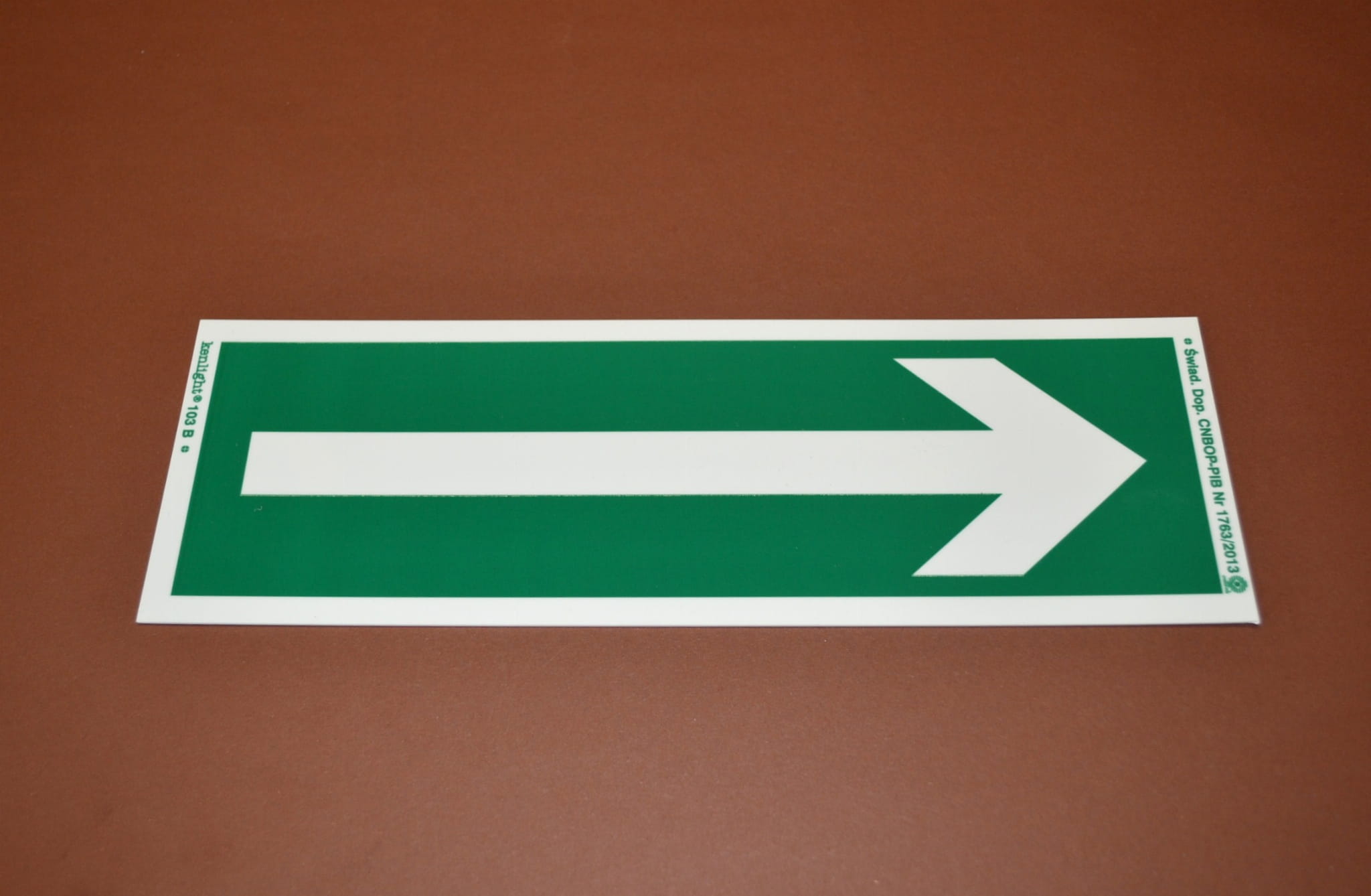 Tablica informacyjna PCV, ewakuacyjna, świecąca w ciemności, o wymiarze 10 x 30cm.