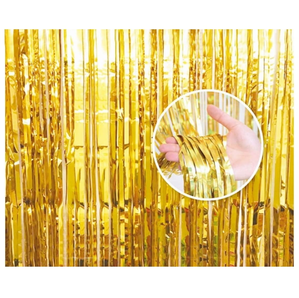 Kurtyna dekoracyjna wykonana z metalicznych pasków o szerokości 90 cm i wysokości 240 cm.