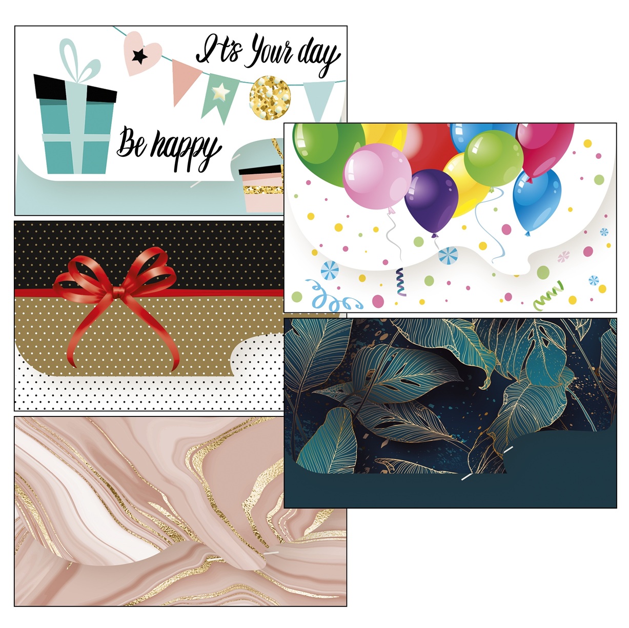 Koperty prezentowe graficzne 157 x 90 mm - 20 szt. / 5 wzorów