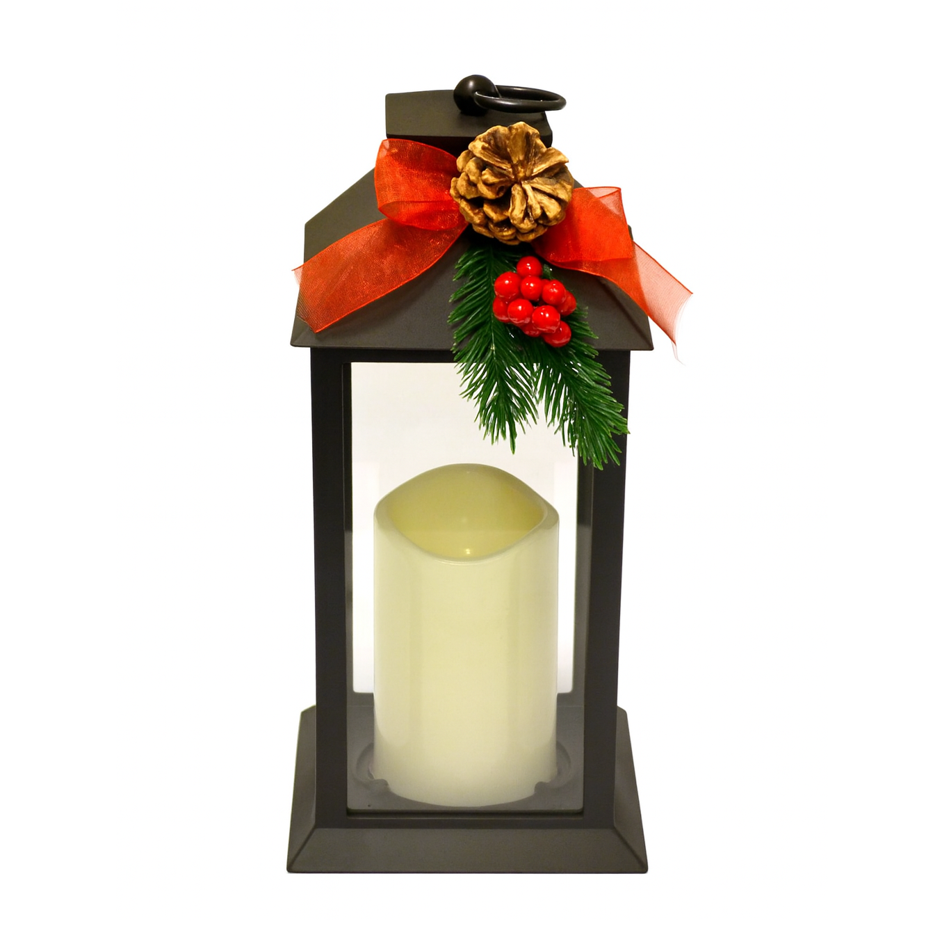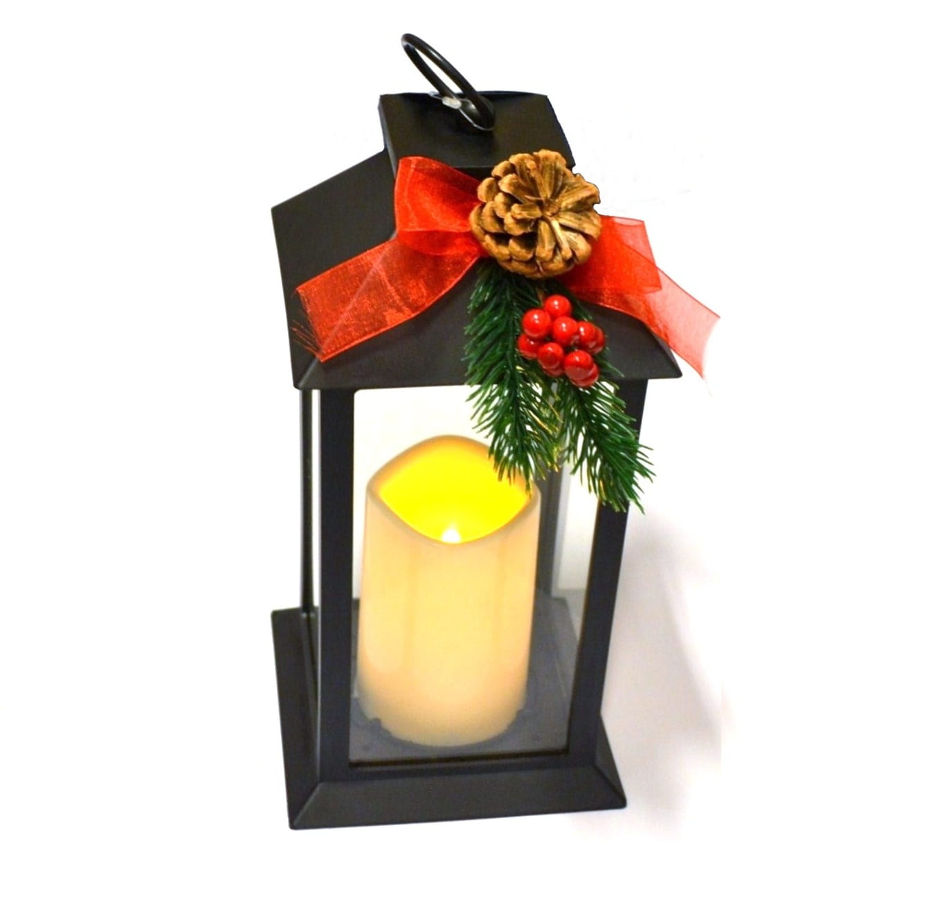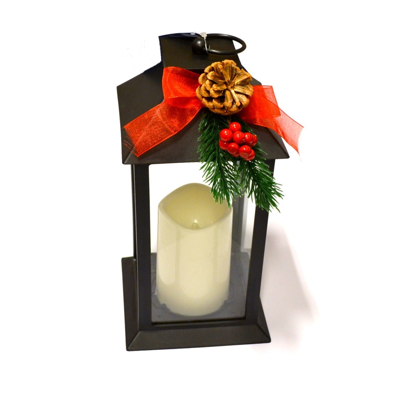 Dekoracyjna, tradycyjna laterenka ze świecącą na ciepły biały kolor świecą LED. Bardzo ładna, stylowa i możliwa do podwieszenia ozdoba. Wymiary latarenki: 14x14x28 cm. Zasilana dwiema bateriami R-6 (w zestawie).