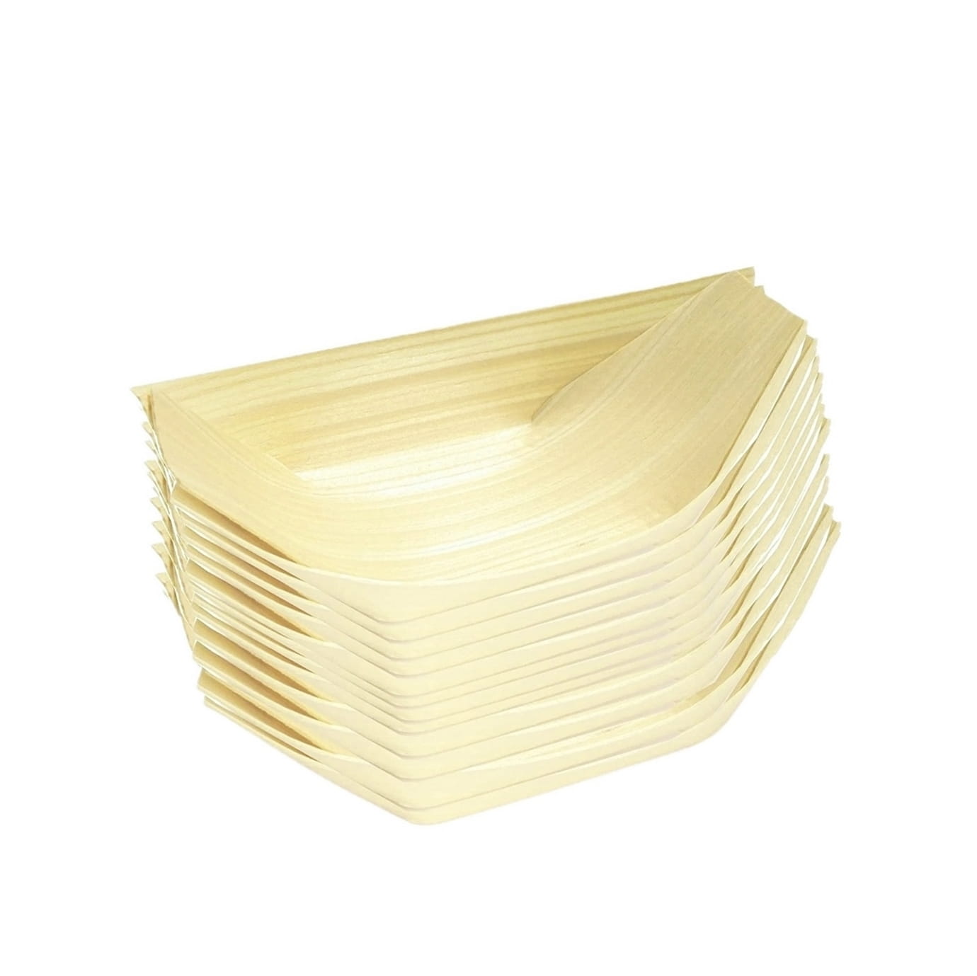 Bambusowe miseczki w kształcie łódeczki o wymiarach 8,2 x 14 cm. Idealne do serwowania przekąsek, przystawek i deserów na wszelkiego rodzaju przyjęciach, degustacjach i prezentacjach.