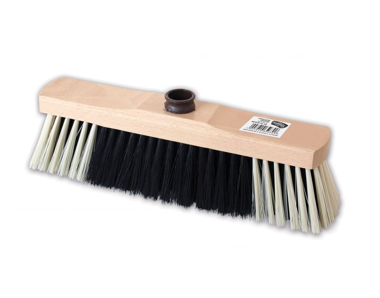 Miotła o szerokości 28 cm, wykonana z drewna, z włosiem sztucznym, pasują do niej trzonki o standardowym gwintowaniu, bardzo trwała, idealna do użytku domowego. Mix kolorów.