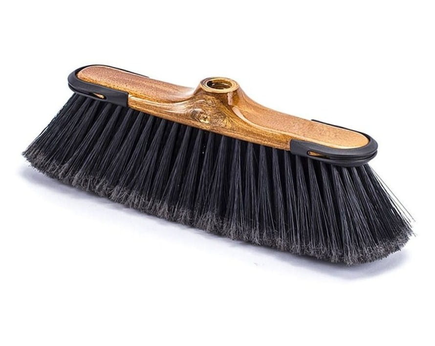 Miotła o szerokości 36 cm, wykonana z wysokiej jakości włosia, idealna do zamiatania drobnego kurzu, włosów, sierści i piasku. Narożniki szczotki wyposażone są w gumowe nakładki zabezpieczające przed obiciem ścian lub szafek. Nasada szczotki wykonana z drewna.