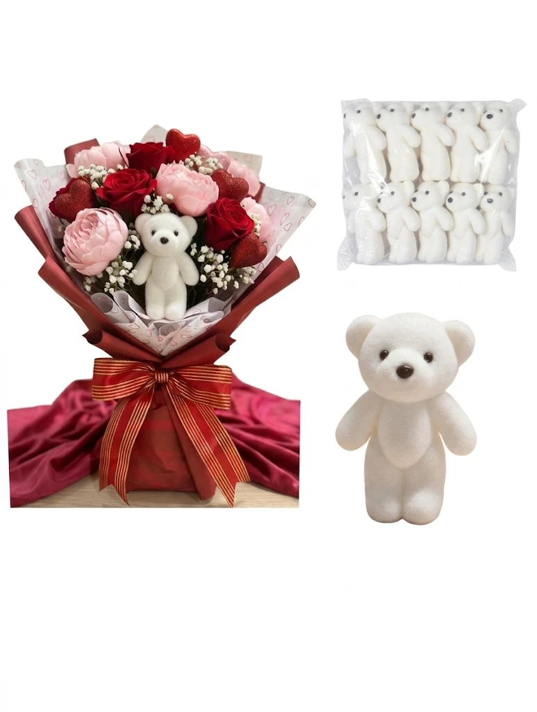 Miś styropianowy flokowany o wymiarach 11x7 cm komplet 10 sztuk, do dekoracji, bukietów itp.