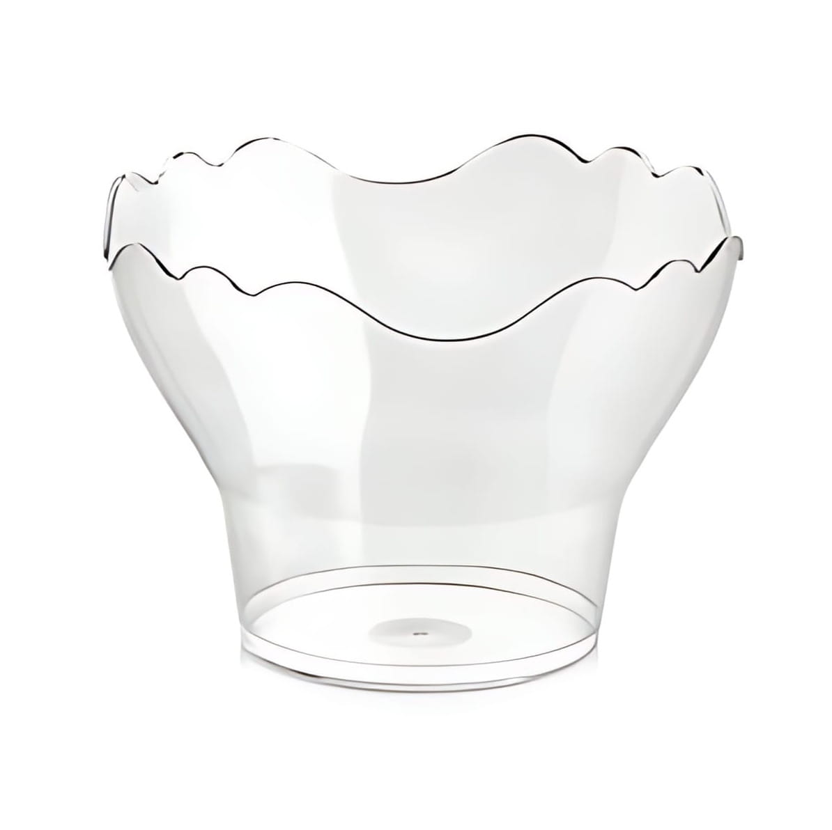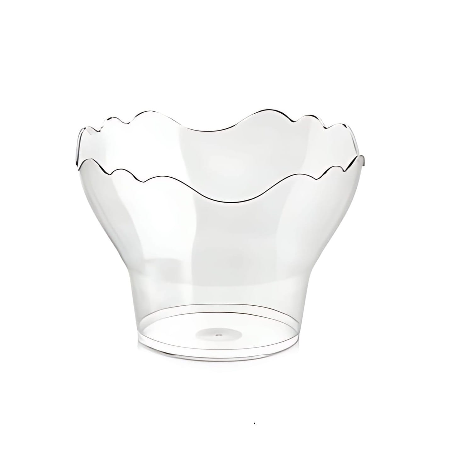 Miska deserowa w kształcie rozłożonego kwiatu o pojemności 200 ml z wytrzymałego tworzywa, do deserów, atestowana. Przeznaczona do wielokrotnego użytku. Niezastąpiona przy organizacji imprez masowych, słodkich stołów, cateringach. Produkt godny polecenia.