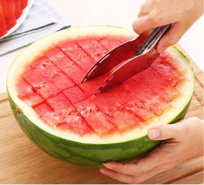 Nóż do wykrawania arbuza bezpośrednio ze skorupy w równe paski, kostki.