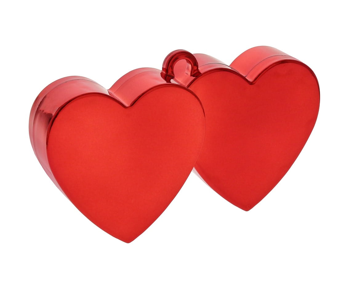 Obciążnik do balonów z helem Dwa serca w kolorze czerwonym o wymiarach 11,5x7 cm.