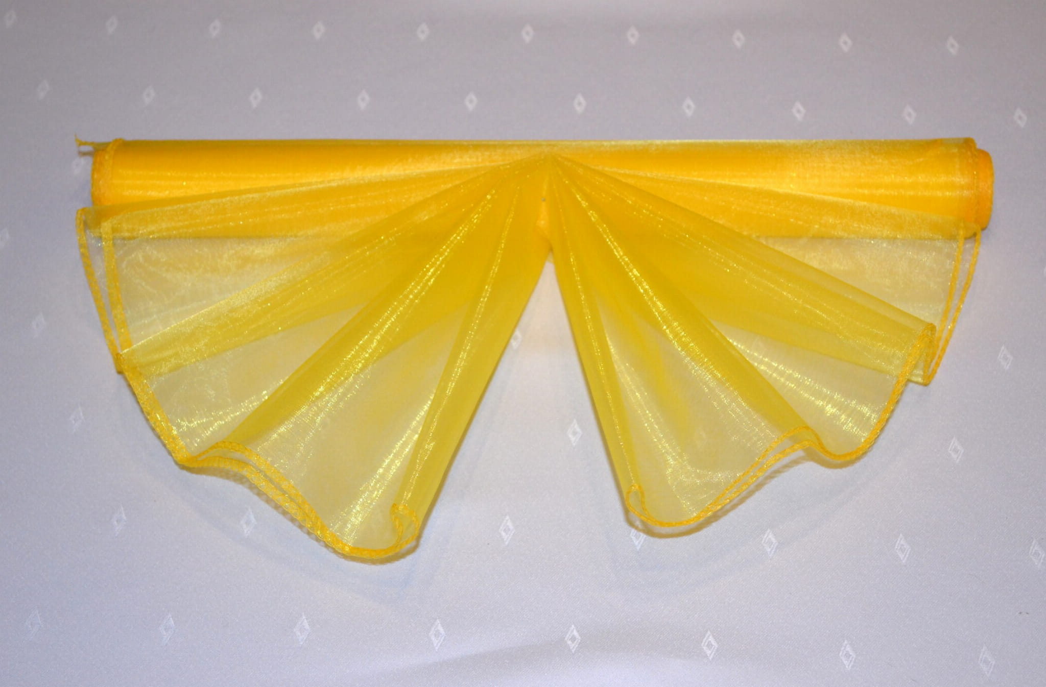 KOLOR ŻÓLTY. Organza dekoracyjna gładka obszywana o szerokości 39 cm i długości nawoju 8 m.
