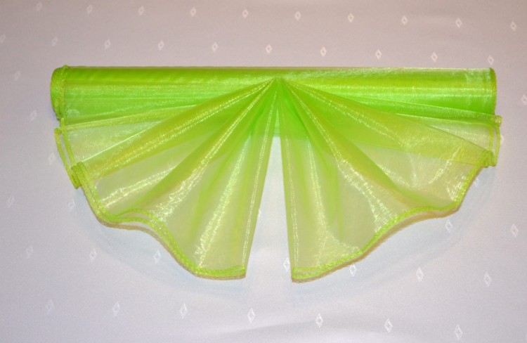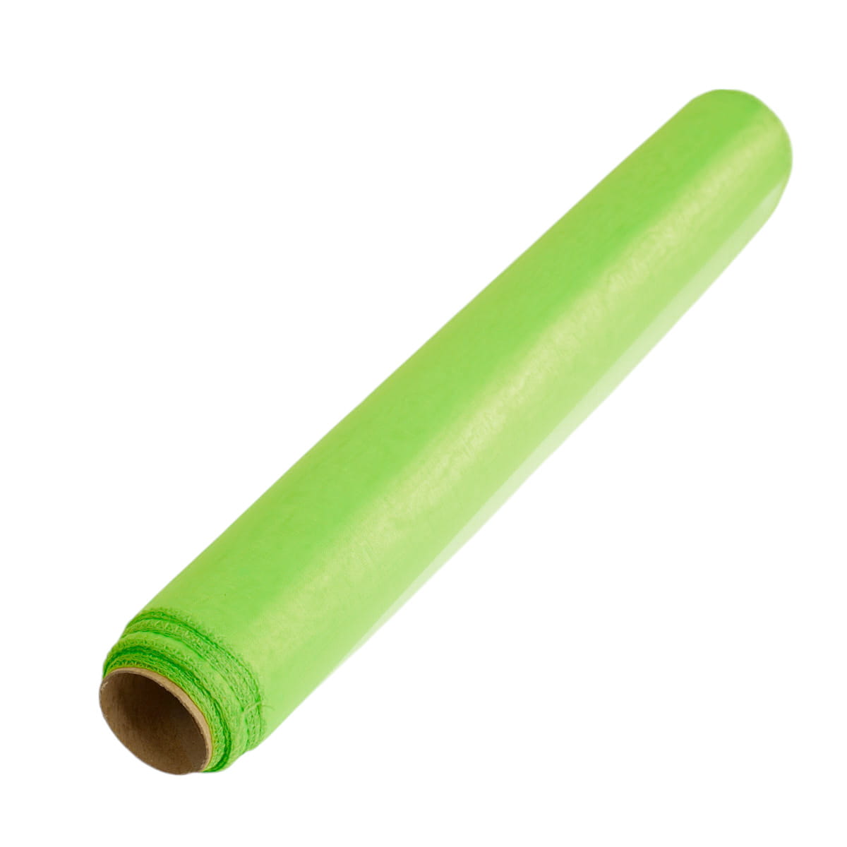 KOLOR ZIELONY JASNY. Organza dekoracyjna gładka obszywana o szerokości 39 cm i długości nawoju 8 m.