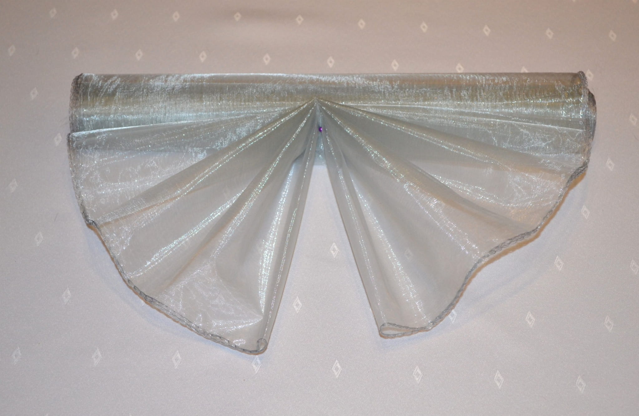 KOLOR SREBRNY. Organza dekoracyjna gładka obszywana o szerokości 39 cm i długości nawoju 8 m.