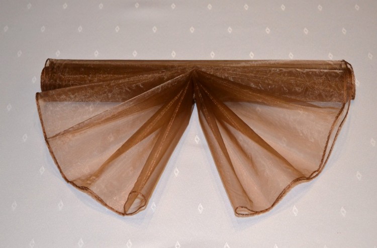 KOLOR BRĄZOWY. Organza dekoracyjna gładka obszywana o szerokości 39 cm i długości nawoju 8 m.