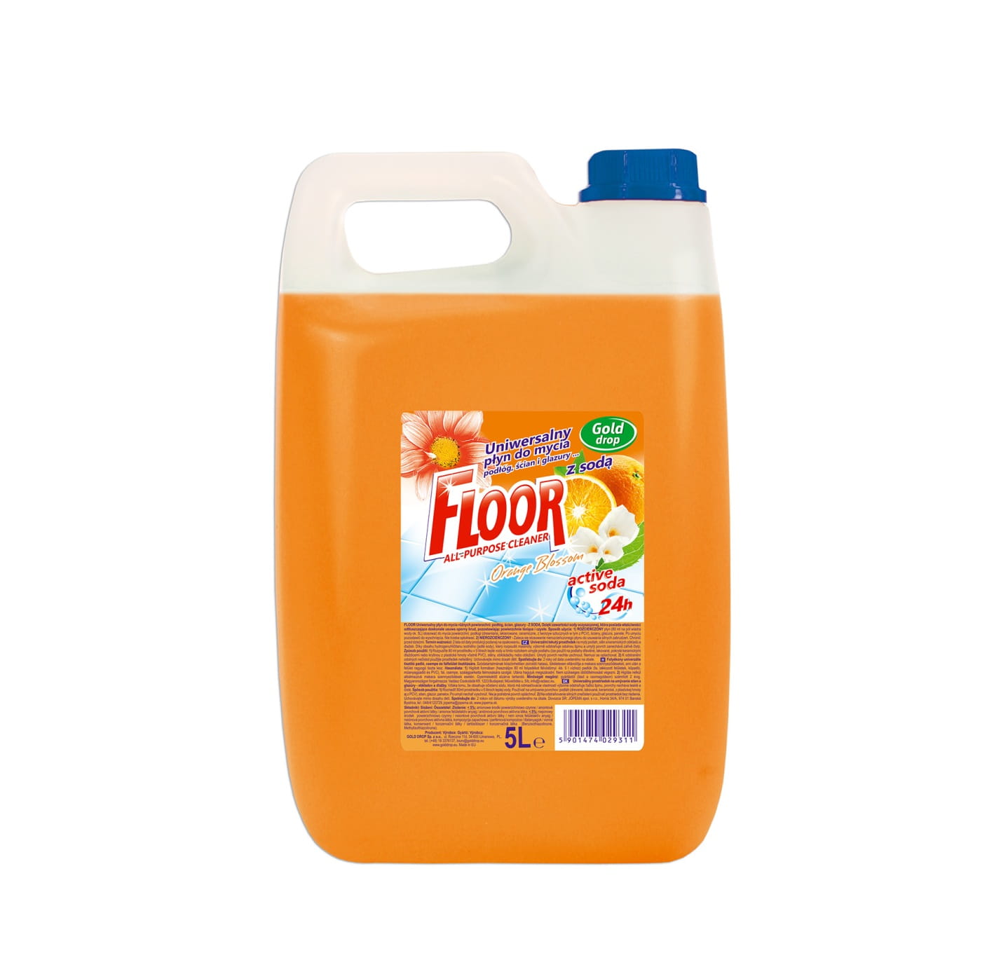 Płyn o pojemności 5 l, uniwersalny z dodatkiem olejku pomarańczowego. Przeznaczony do mycia podłóg, ścian i glazury. Pozostawia przyjemny, długotrwały zapach. Ma właściwości antybakteryjne.