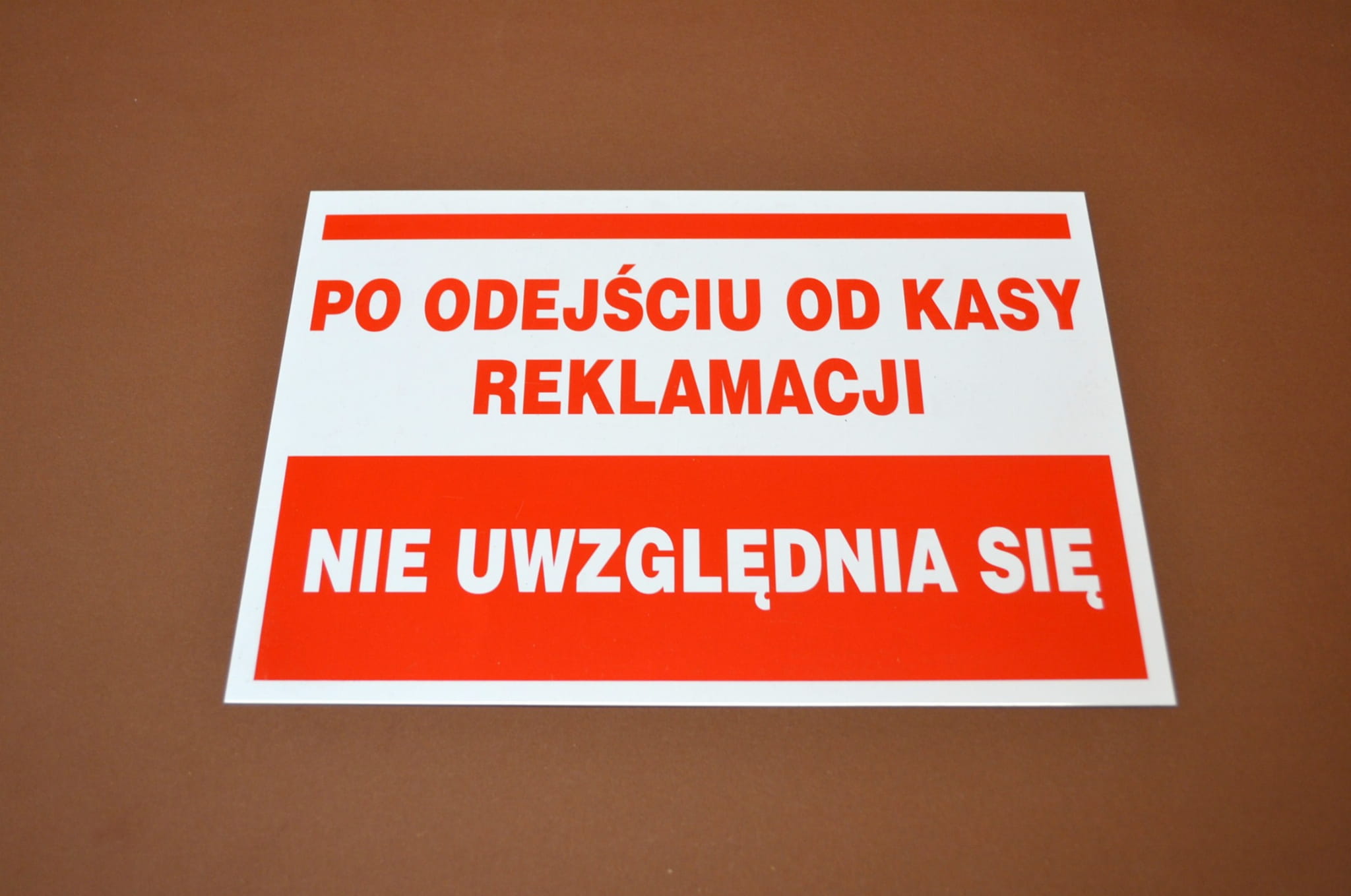 PO ODEJŚCIU OD KASY - TABL. PCV NADRUK 17,5x 25cm