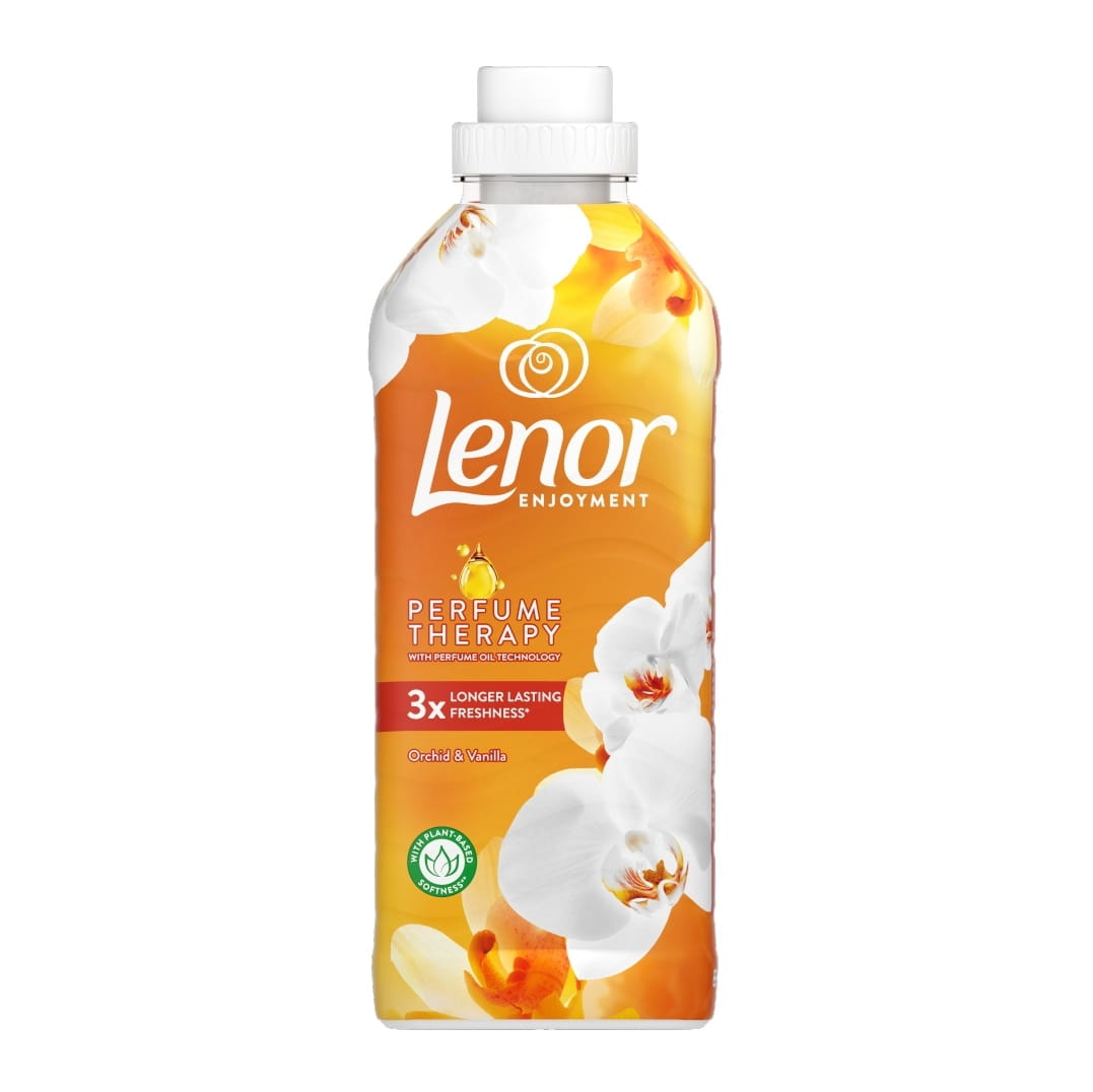 Płyn do płukania Lenor o intensywnym i trwałym zapachu kwiatu orchidei z nutą wanilii. Zmiękcza i aromatyzuje prane tkaniny chroniąc je dodatkowo przed mechaceniem, rozciąganiem i utratą intensywności kolorów. Pojemność: 700 ml.