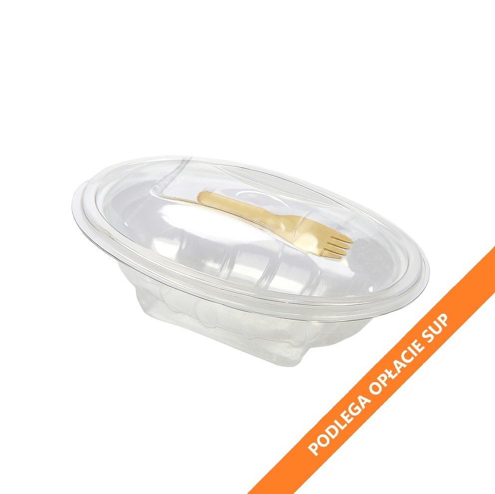 Pojemnik sałatkowy owalny z widelcem PET 370 ml 100 szt.
