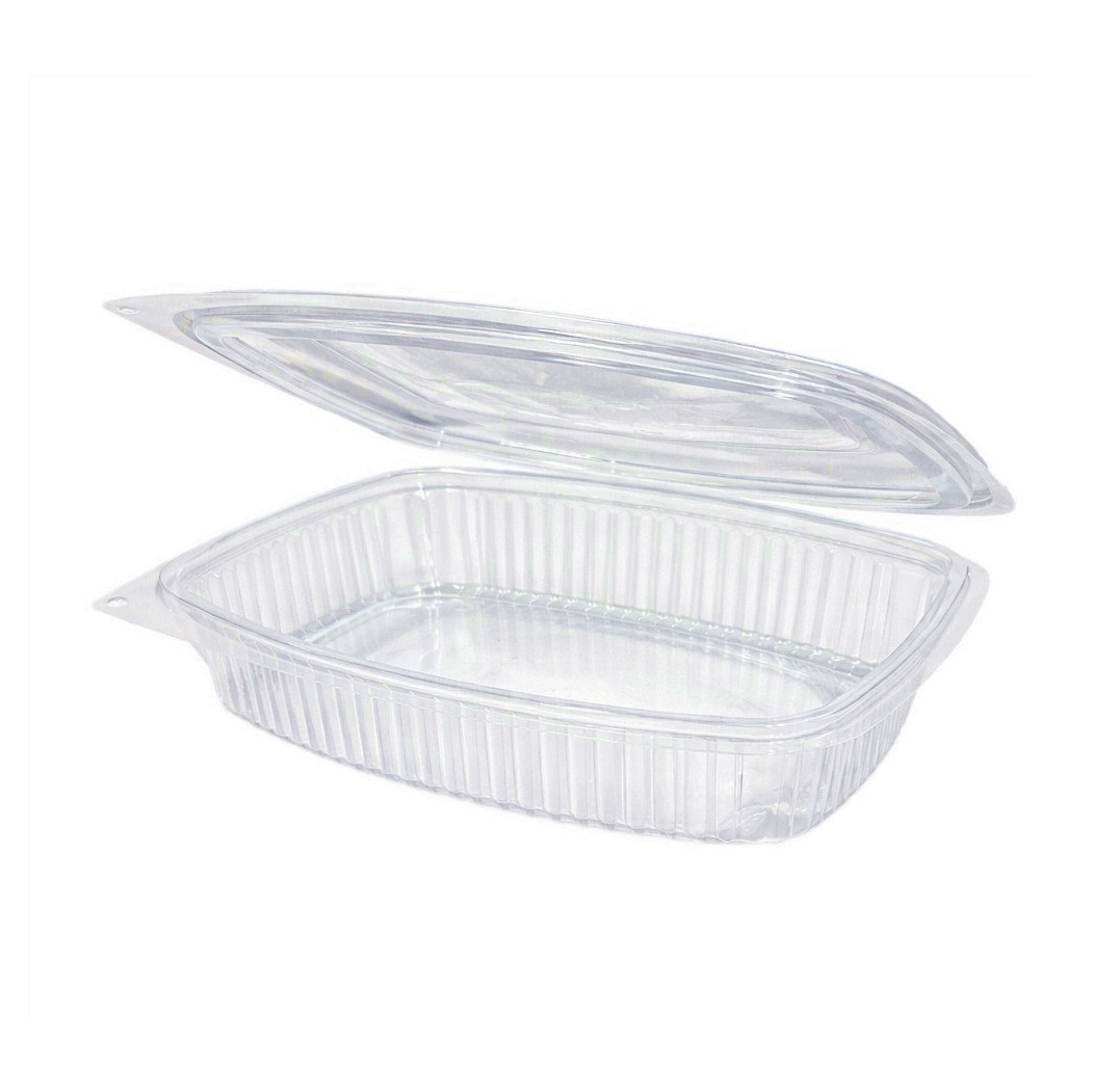 Pojemnik garmażeryjny owalny o wymiarach 13x19x4 cm z tworzywa przeźroczystego, wyposażony w wieczko zespolone z całością, atestowany. Przeznaczony do wielokrotnego użytku. Stosowany jako opakowanie do wyrobów garmażeryjnych, własnych itp.