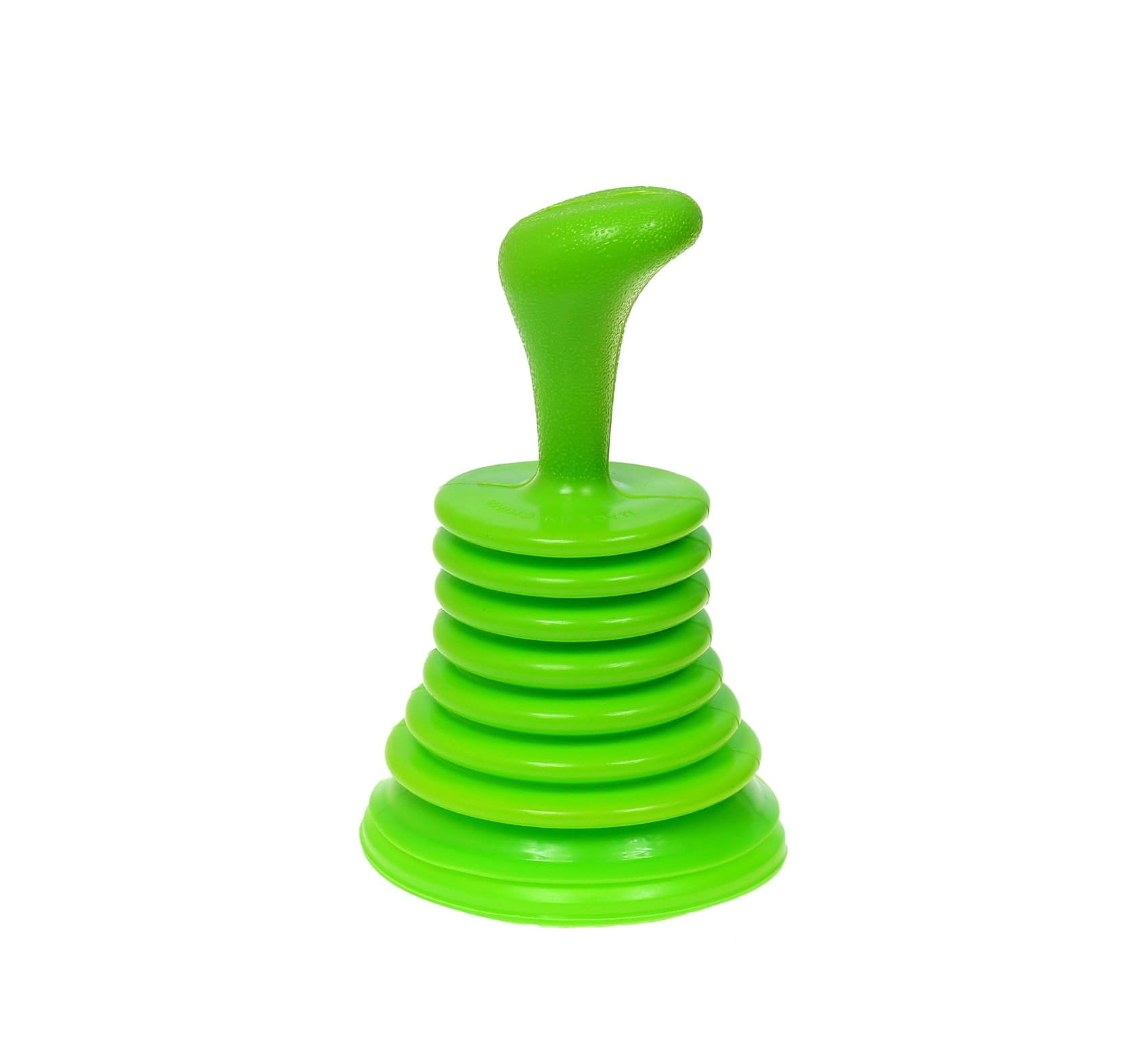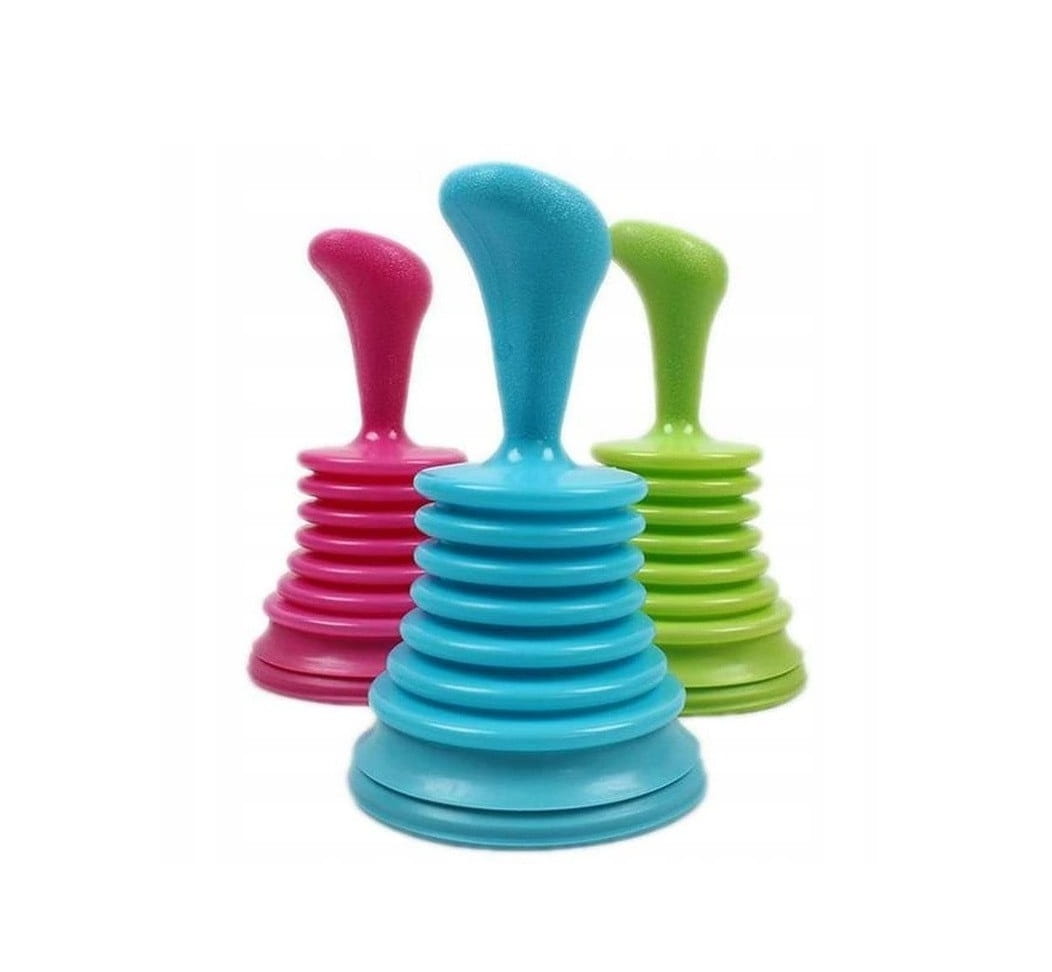 Silikonowy przepychacz do udrażniania odpływów umywalek, zlewów, wanien, bidetów, muszli klozetowych, kratek podłogowych itp. Wysokość 18 cm, średnica 10,5 cm.