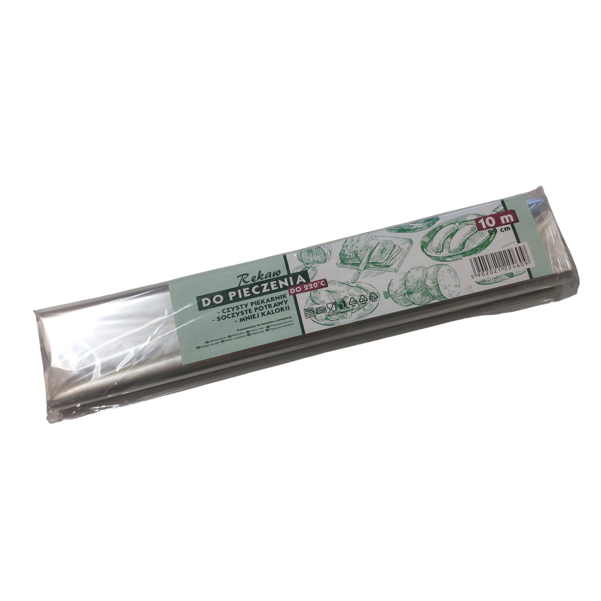 Rękaw foliowy do pieczenia o szerokości 29 cm i nawoju 10 mb, atestowany, stosowany do wypieku mięs, wyrobów itp. Kolor transparentny. Pakowany w rolke foliową.