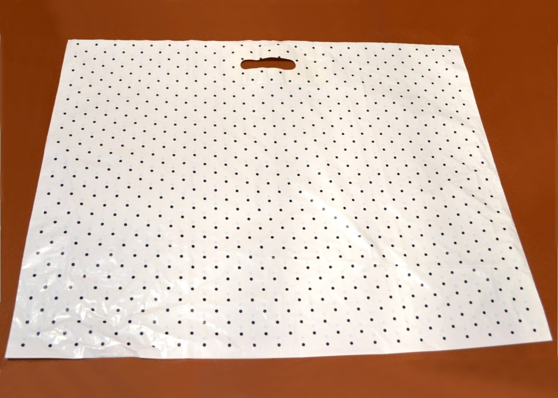 KROPKI CZARNE. Reklamówka grubości 30 mikronów typu market o wymiarach 50X63 cm z nadrukiem.