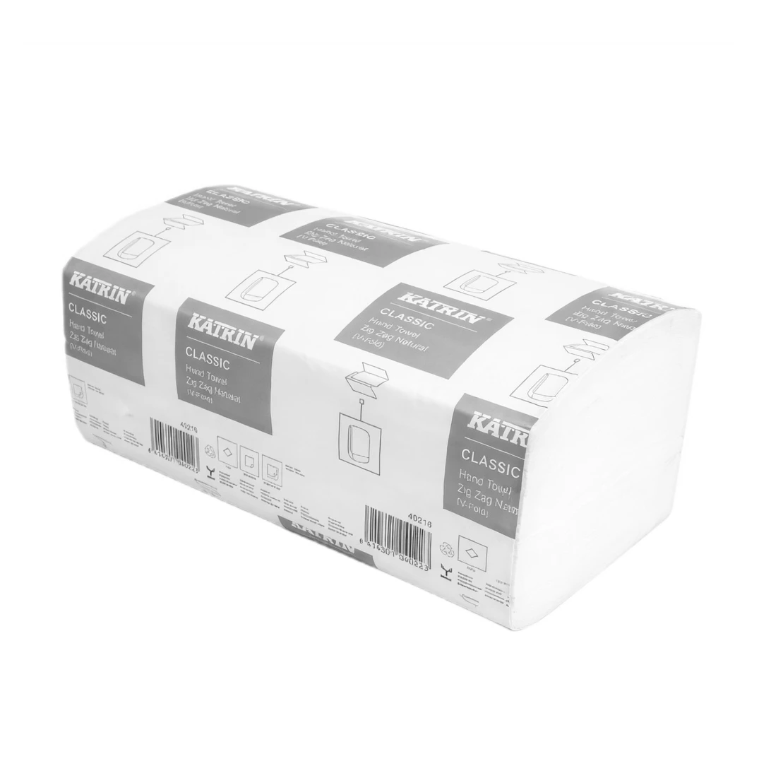 Ręcznik papierowy makulaturowy Katrin typu ZZ do podajników. Dwuwarstwowy, gofrowany, wodotrwały i bezzapachowy. Rozmiar listka 21 x 23 cm pakowany po 200 listków w bindzie oraz 20 bind w kartonie.
