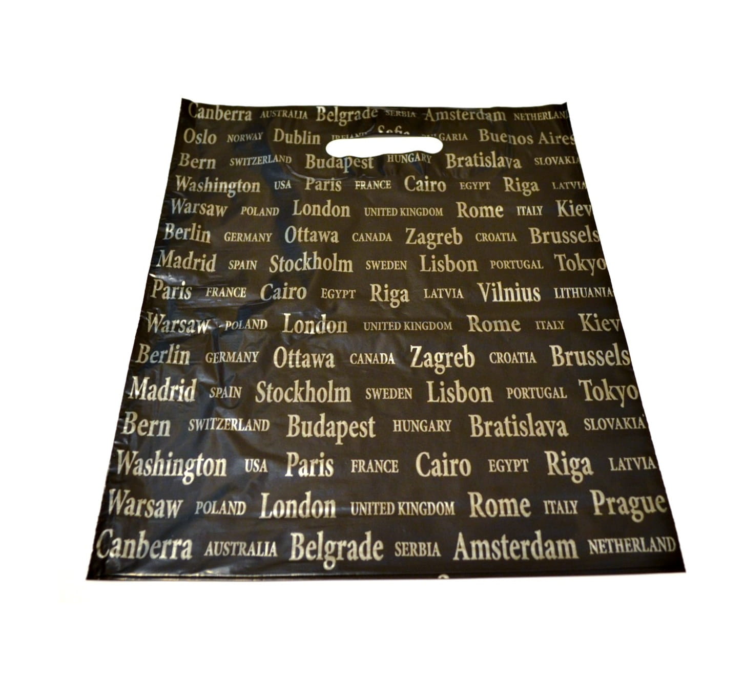 MIASTA PAŃSTWA. Reklamówka grubości 30 mikronów typu market o wymiarach 33x40 cm z nadrukiem.