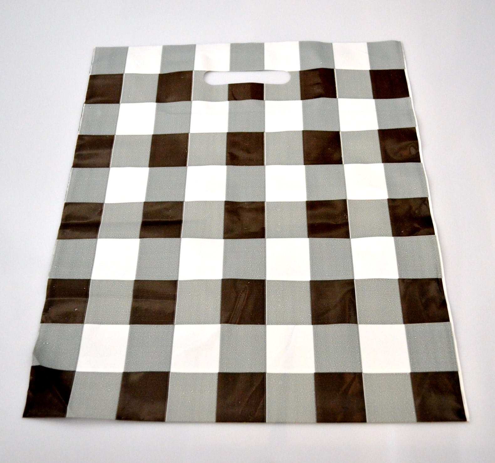 KRATA CZARNO-BIAŁA. Reklamówka grubości 30 mikronów typu market o wymiarach 33x40 cm z nadrukiem.