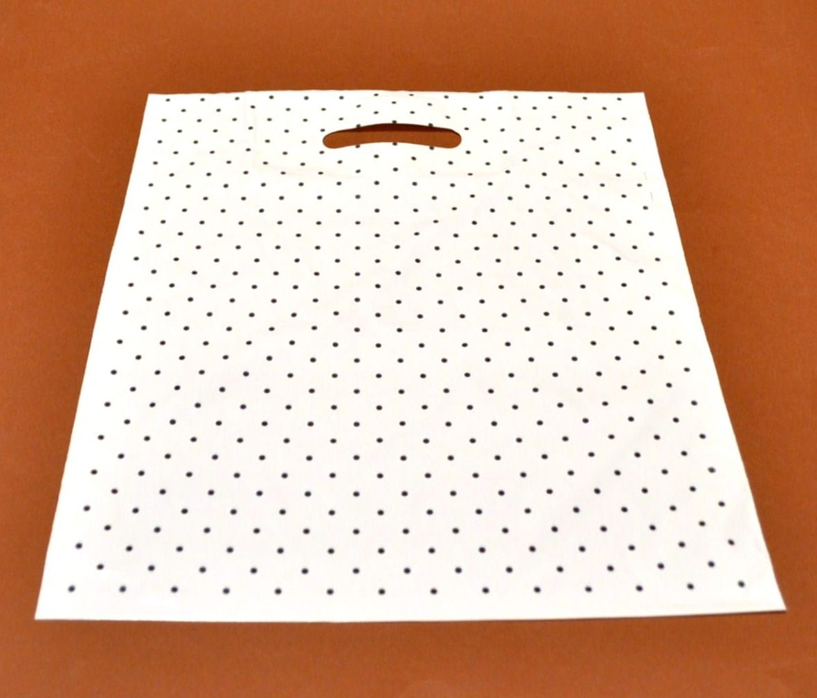 KROPKI CZARNE. Reklamówka grubości 30 mikronów typu market o wymiarach 33x40 cm z nadrukiem.